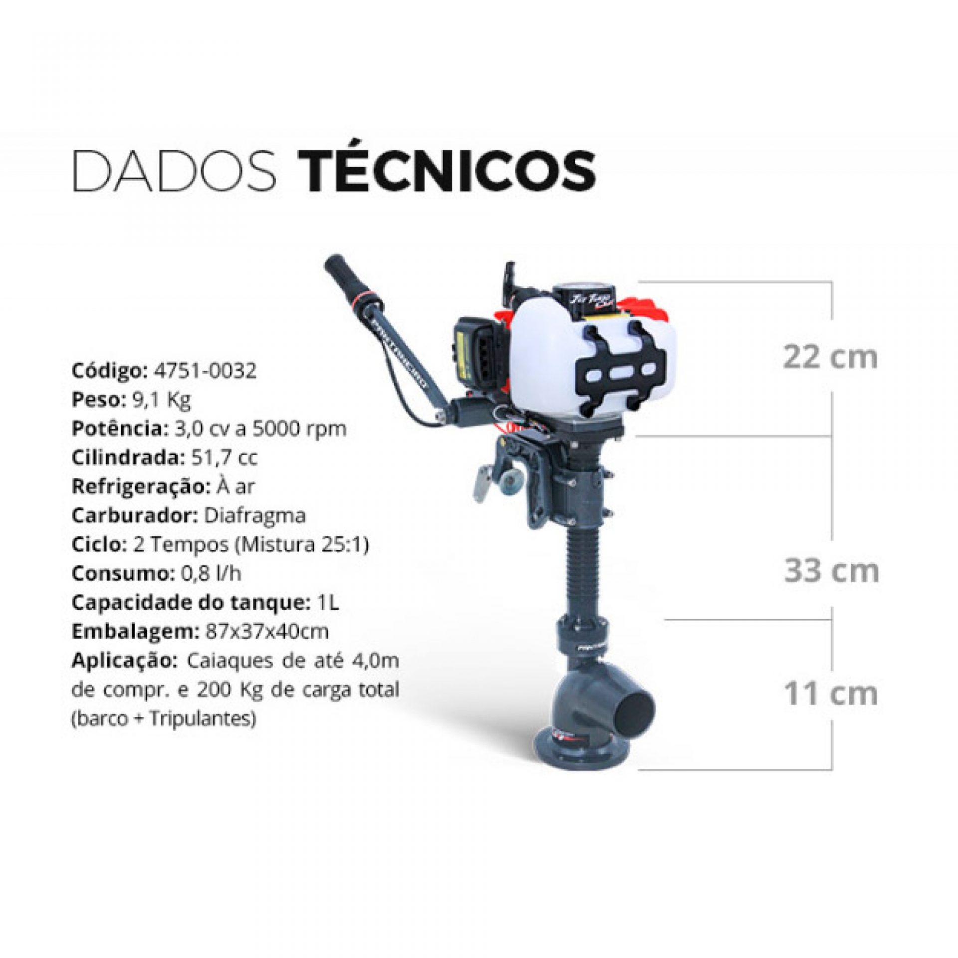 Motor de popa Jet Turbo Central Pantaneiro 3.0hp 2 tempos